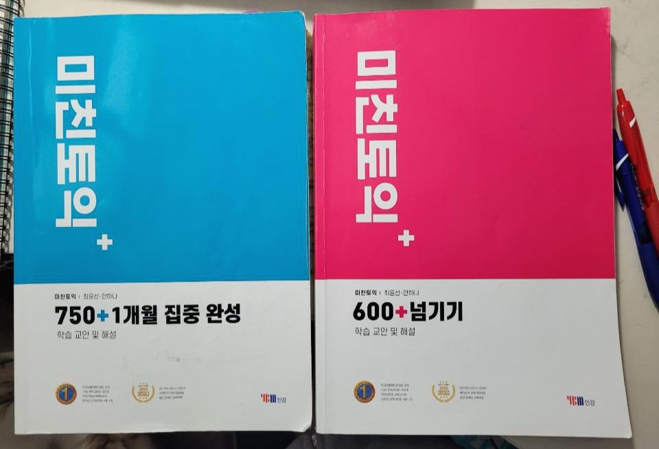 2. 사용 교재 : 미친 토익 600+ 교안, 미친토익 750+ 교안, YBM 실전 모의고사 1000제 RC/LC, 해커스 노랭이 단어책