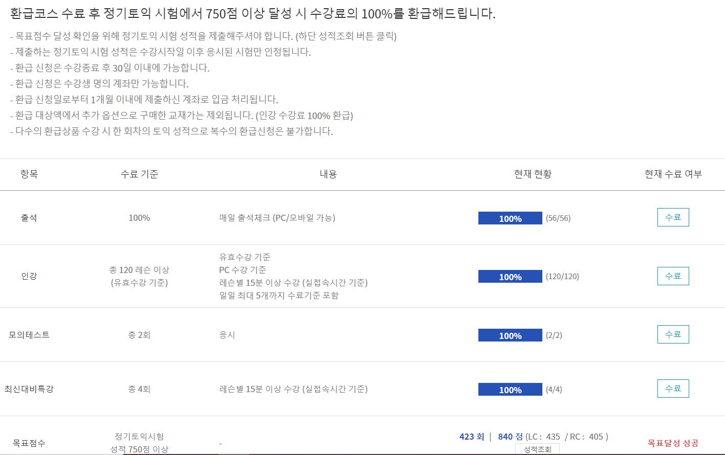 나는 YBM 750+ 환급 코스를 수강했고 환급도 받았다!! : )