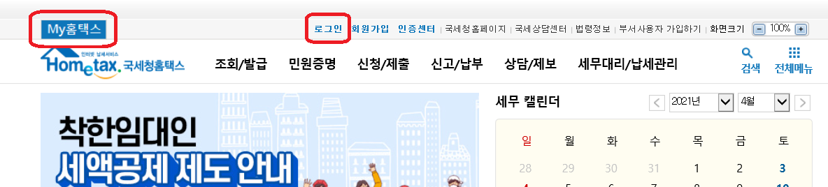 1. 홈택스 로그인 ( 공동-금융 인증서 )